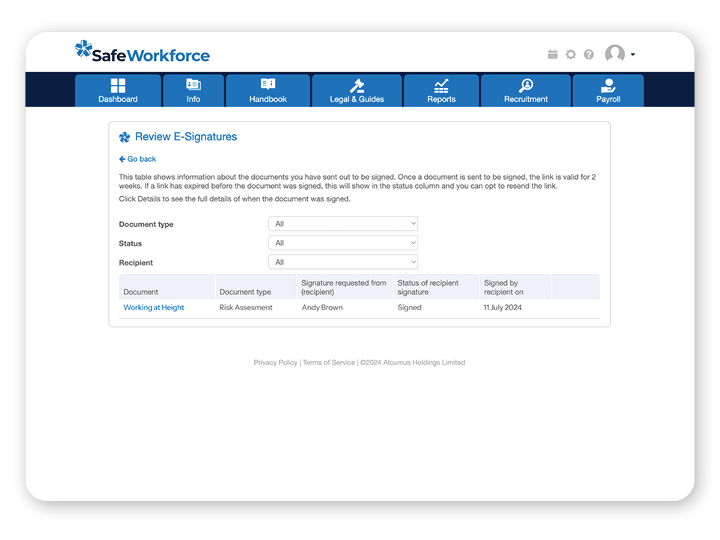 By using our software you can store all your key health and safety compliance documents in one place.